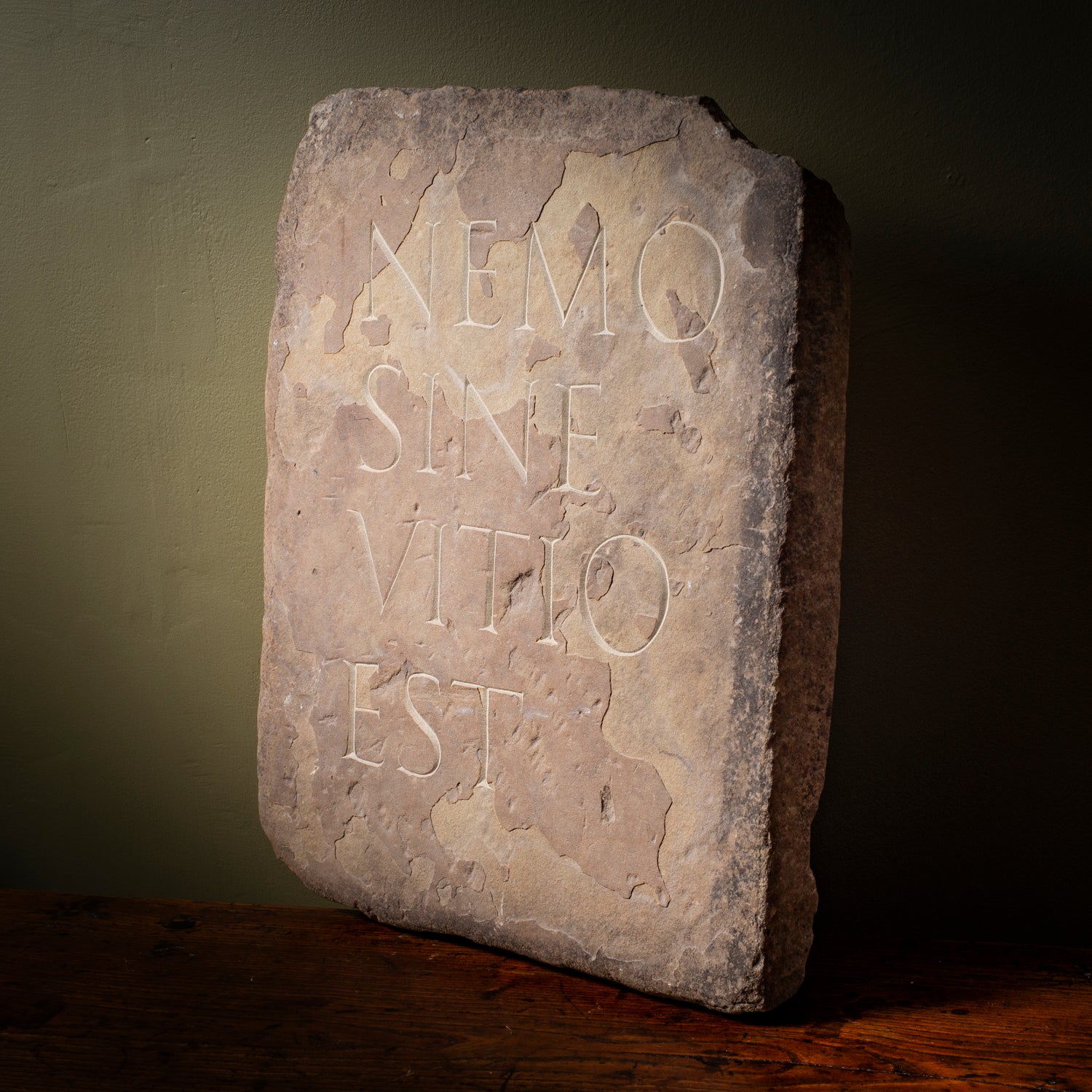 The phrase is Roman in origin, but its message is enduring — a quiet, philosophical reminder, crisply carved into stone that already carries a story of its own.