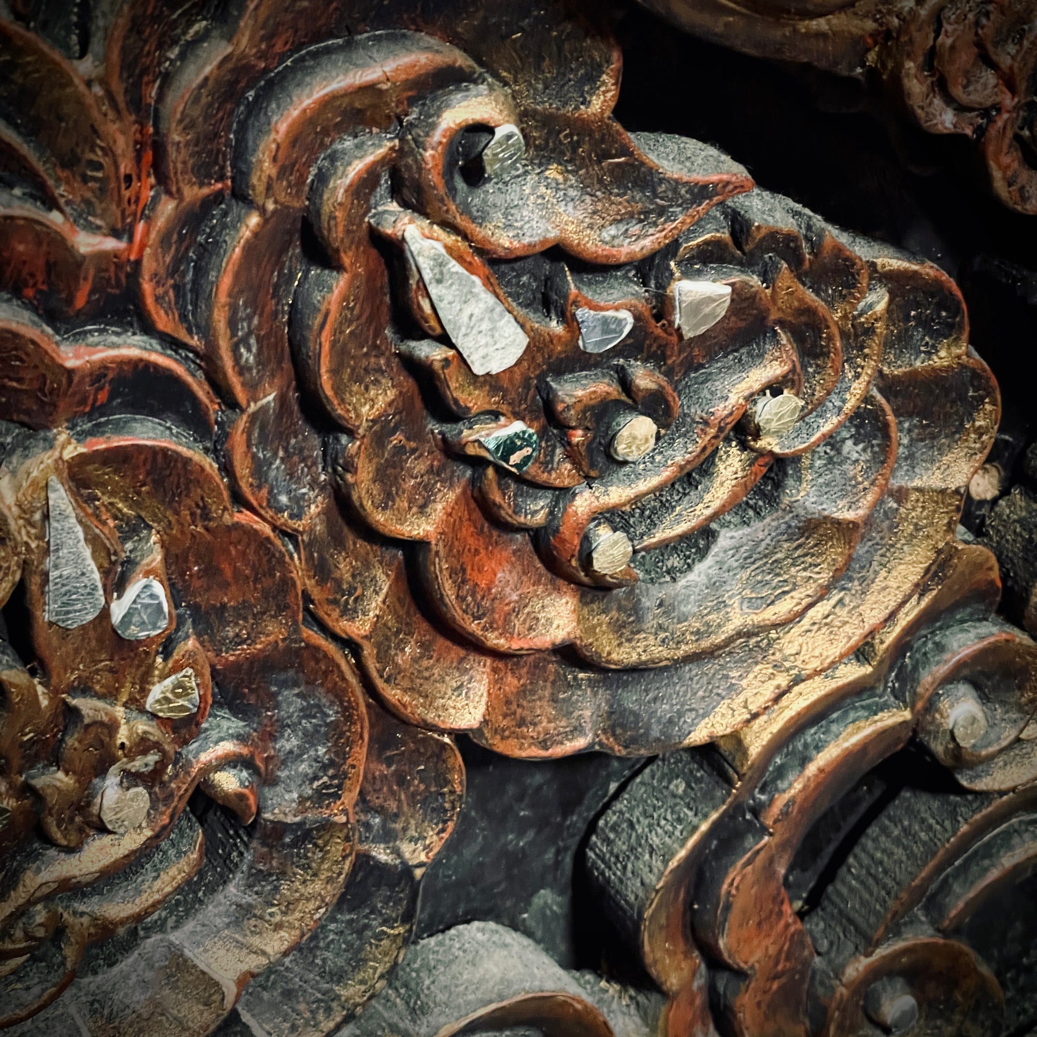 - Materials: Hand-carved hardwood, lacquer, gilding, mirrored glass