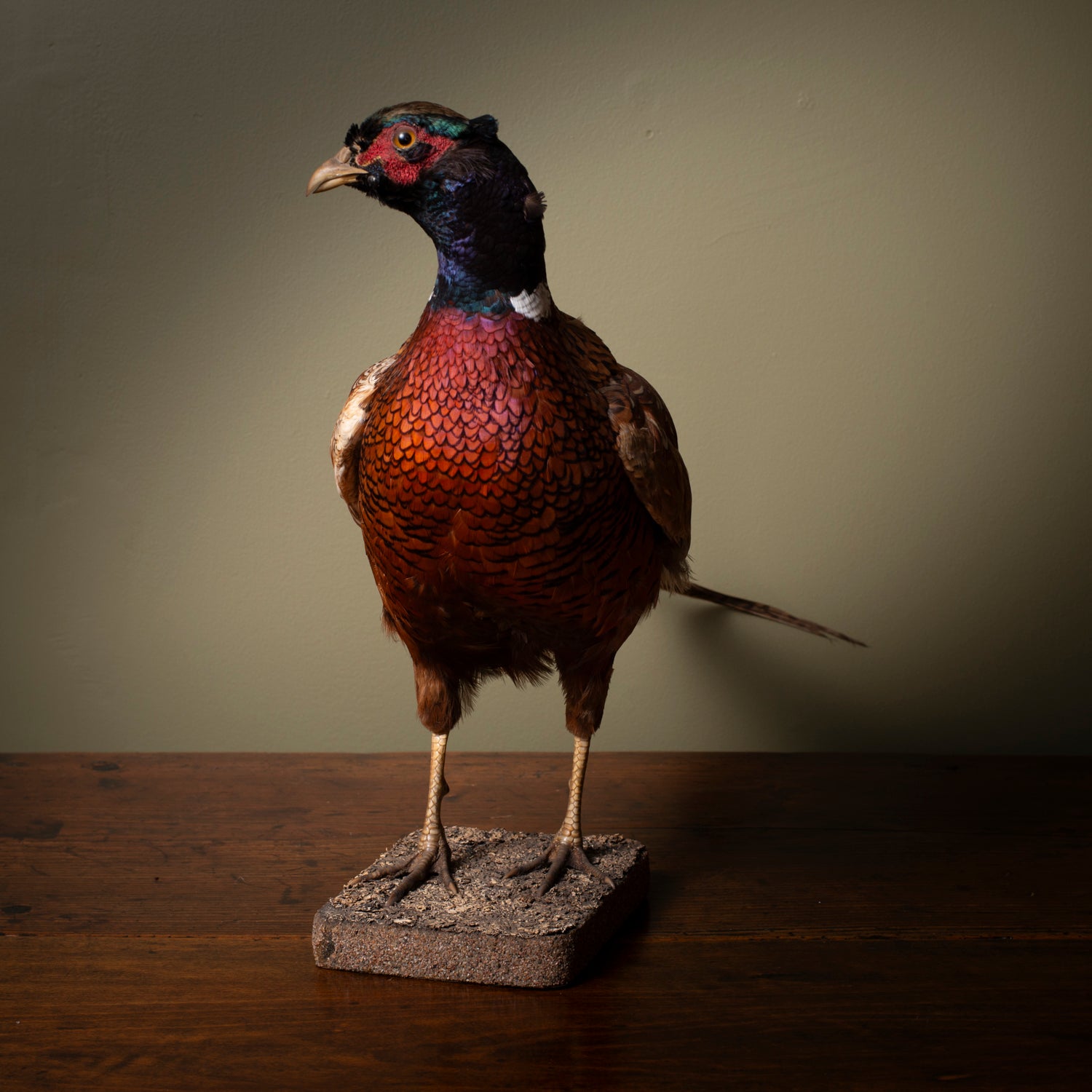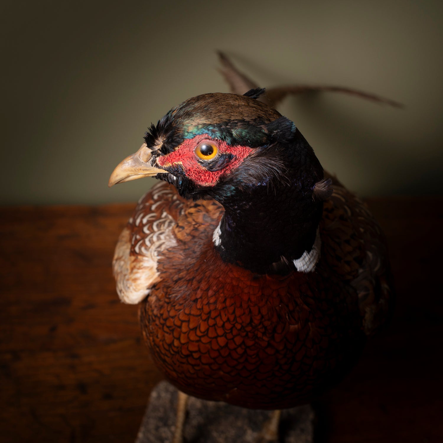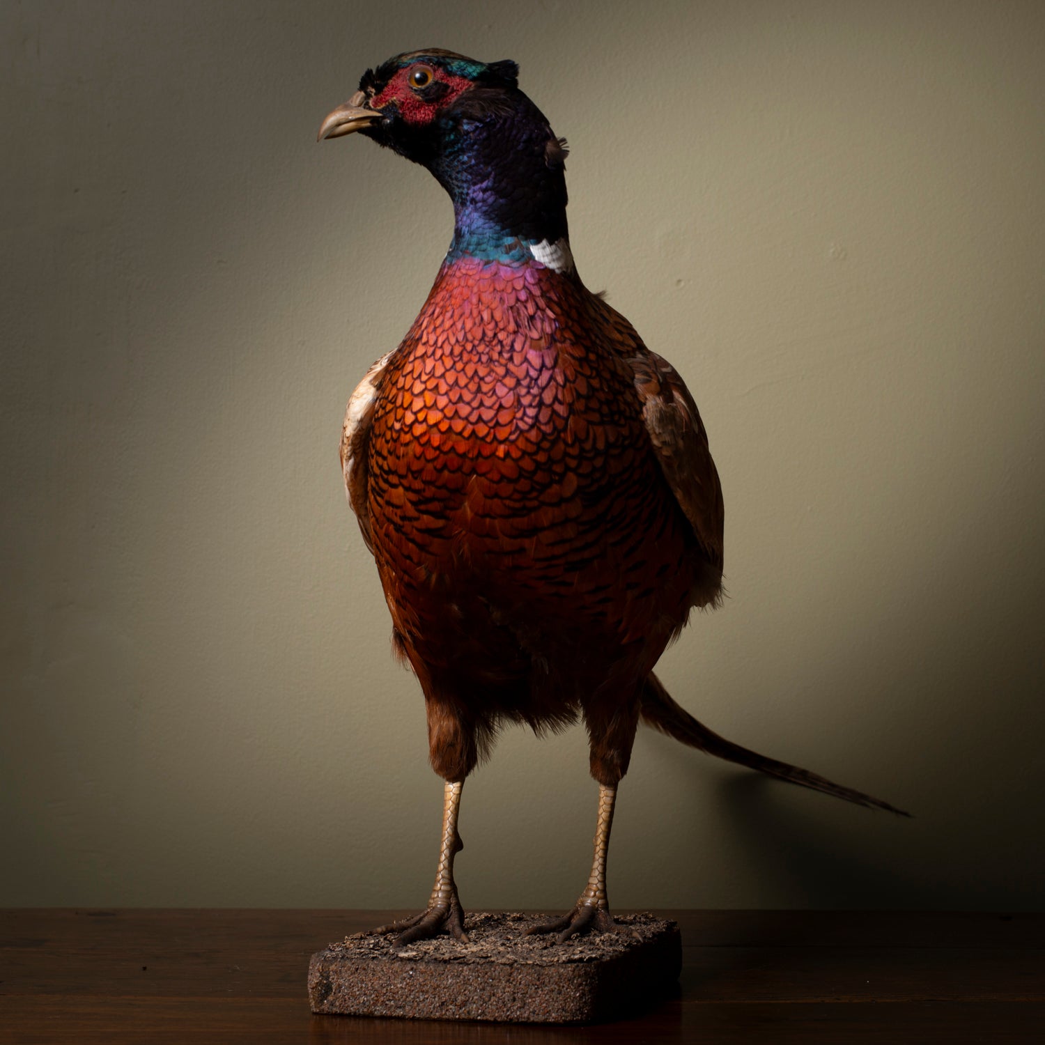 Materials: Real pheasant (taxidermy), card base with painted texture