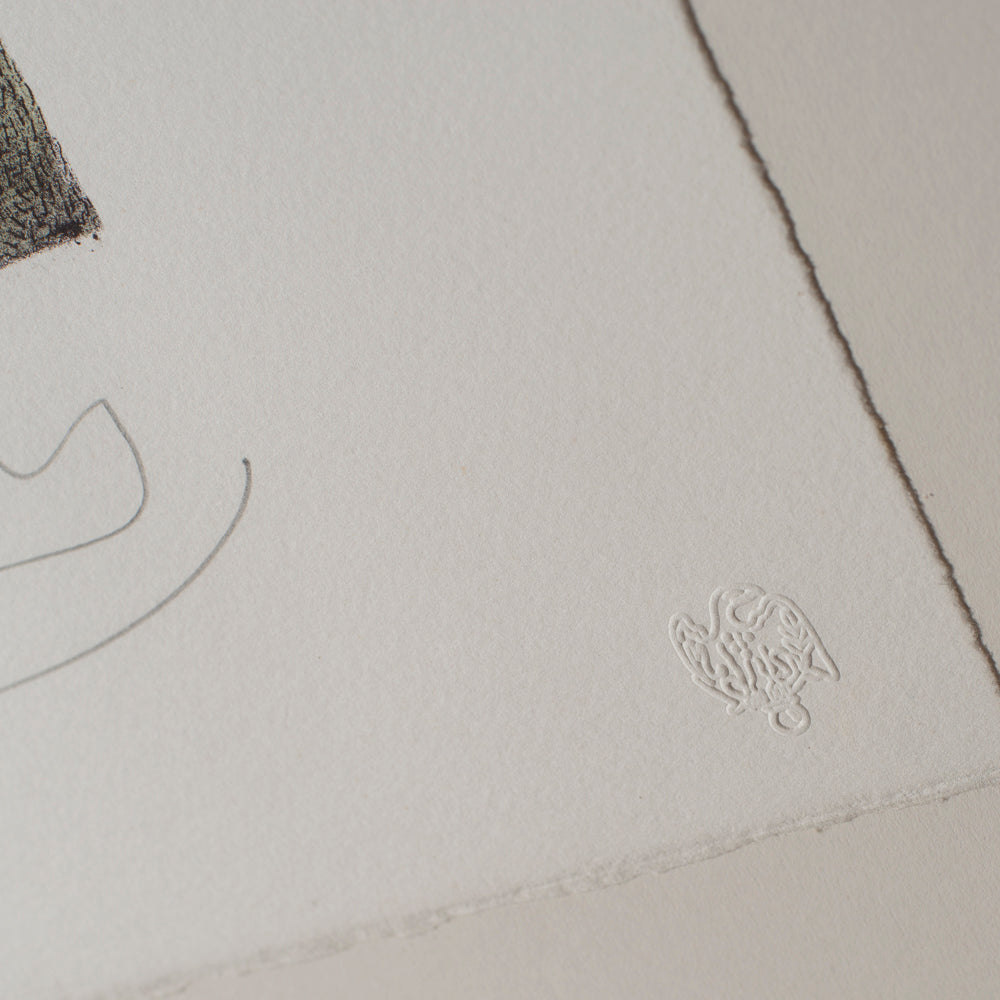 - Materials: Printed paper with hand-applied colour; pencil signature and numbering