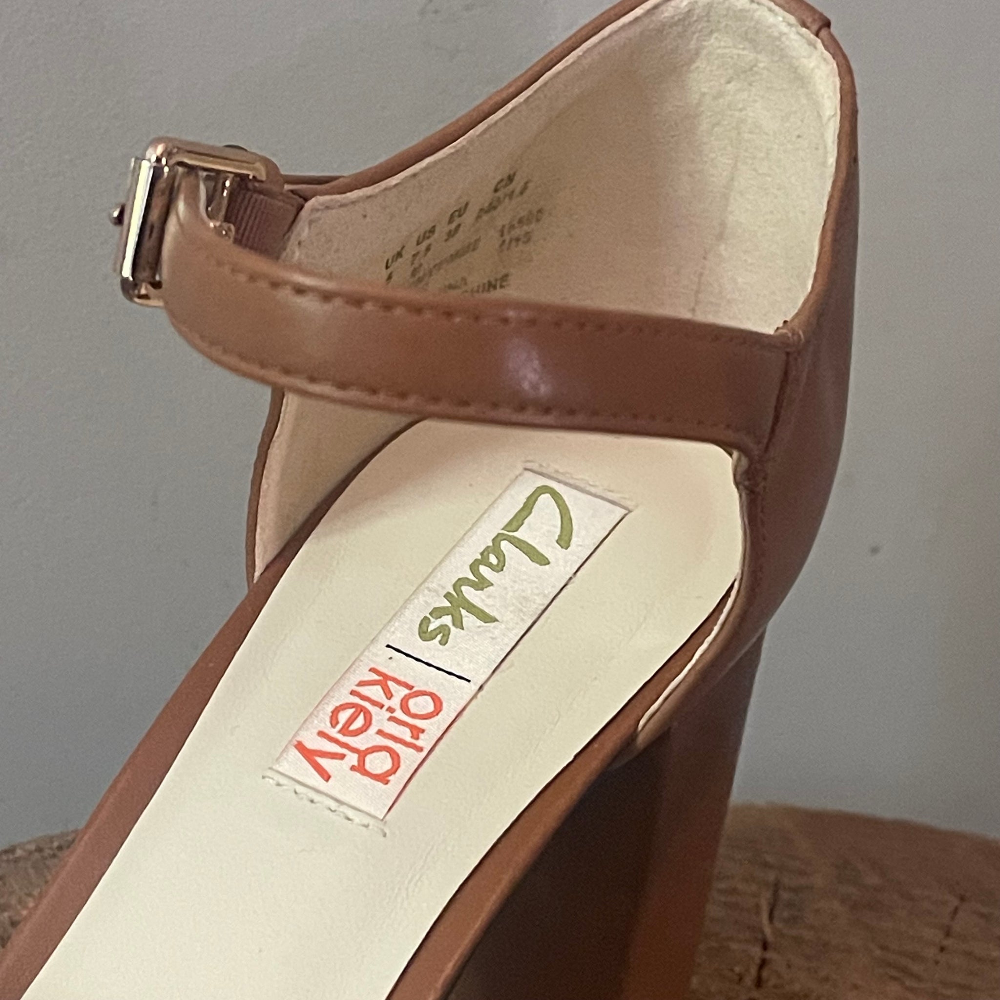 Features: Chunky block heel, ankle strap with buckle fastening, Orla Kiely printed sole