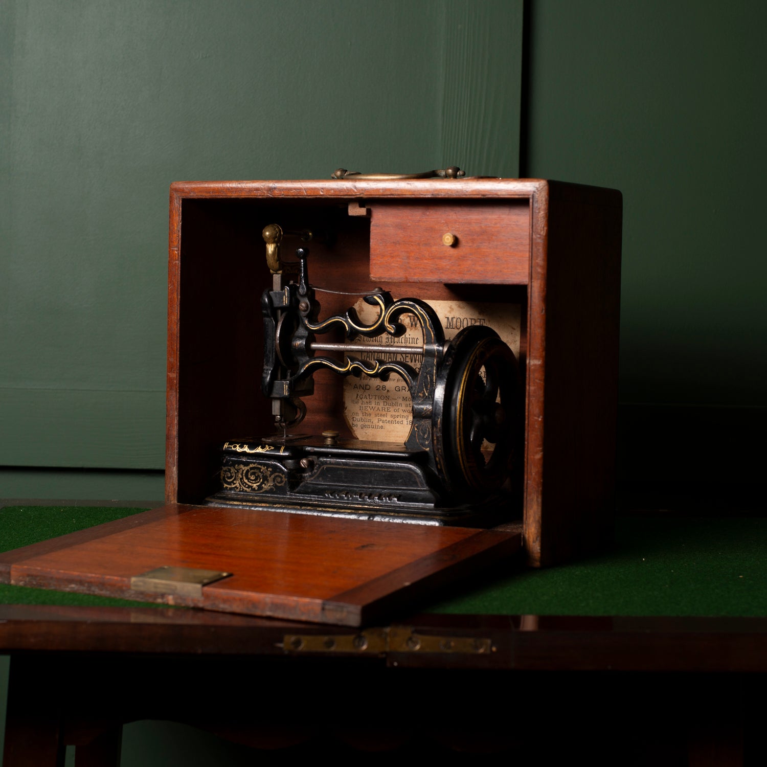 - Provenance / Story: Originally sold through W. B. Moore’s “Canadian Sewing Machine Depots” at 51 Grafton Street, Dublin, and 28 Grand Parade, Cork