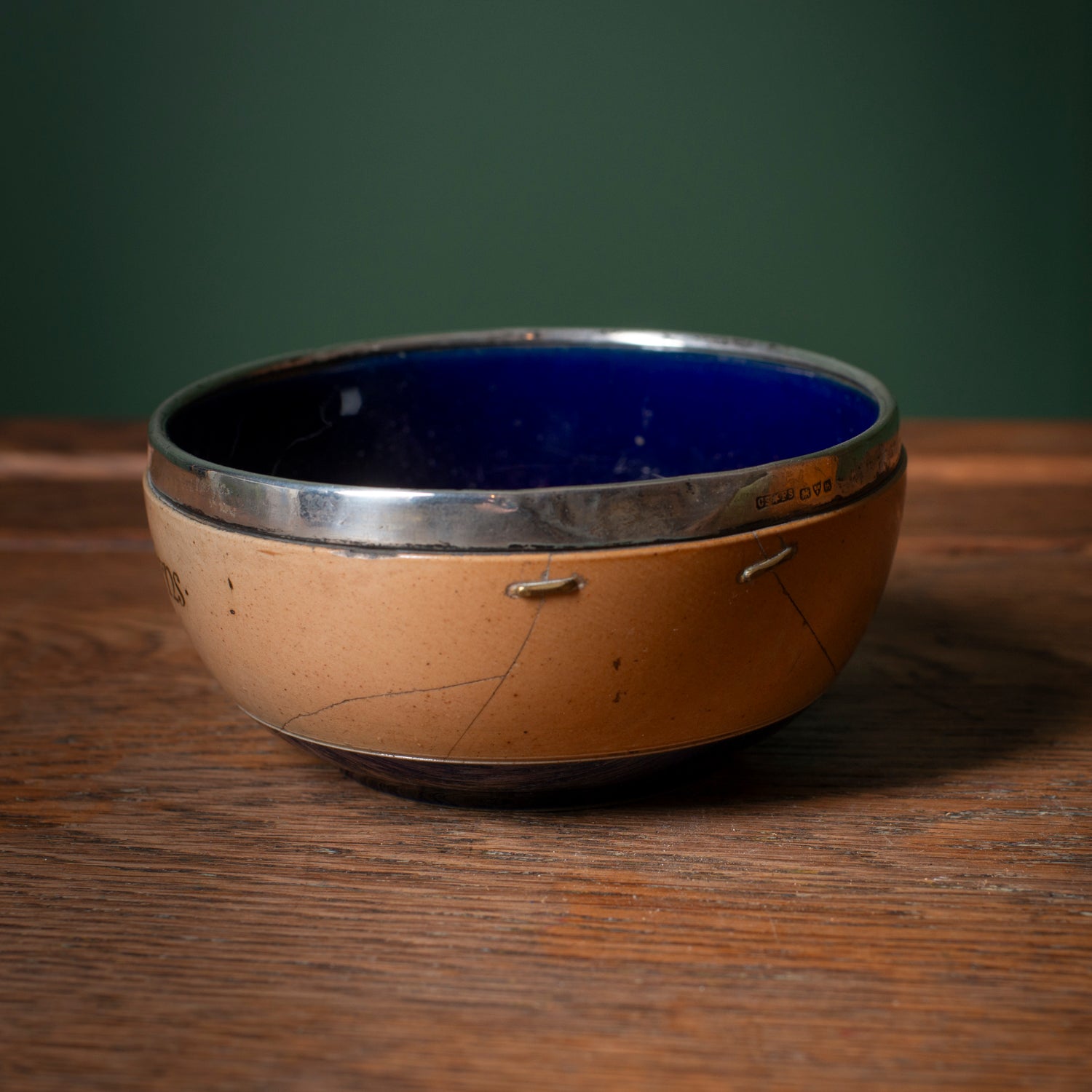 - Provenance / Story: Royal Doulton mottoware was popular in the late Victorian and Edwardian periods, often decorated with Scottish proverbs. Staple repairs suggest the bowl was valued enough to mend professionally rather than discard.